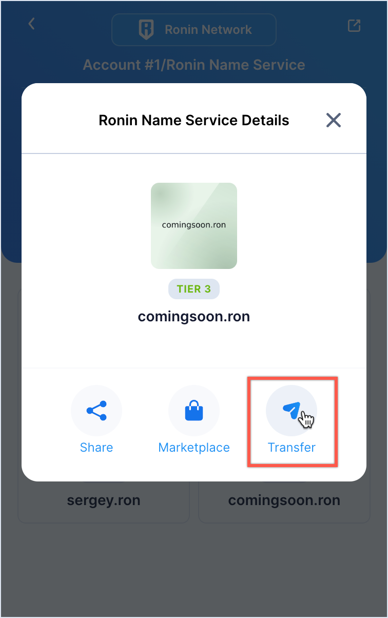 2. Choose the RNS name you want to transfer, and then select Transfer.