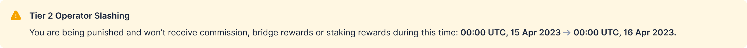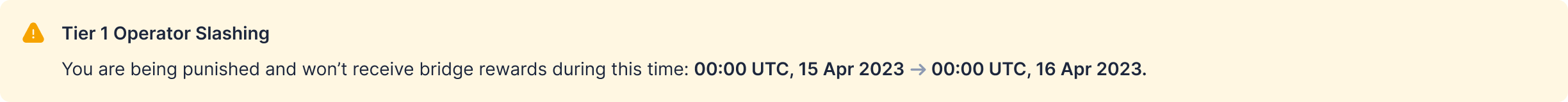 If a bridge operator misses more than 30% votes in a day, the operator doesn't earn the bridge rewards for the next five days. The operator's status is set to Punished.