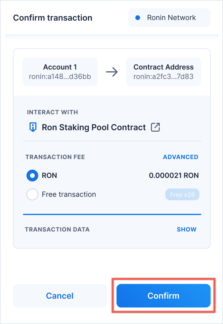 After the transaction is confirmed, you can review its details on the Activities tab or check the status in Ronin Block Explorer.
