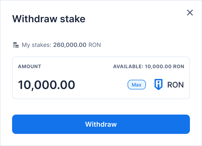 2. Enter the amount manually or choose Max to withdraw the entire stake, and then select Withdraw.